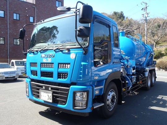 液体状の汚泥や廃油、廃酸、廃アルカリを収集する際に使用します。通常のバキュームよりも吸引力が強力なので、工場内等のラインの機械抜き作業、ピット清掃などホースを長く延ばさなくてはいけないような場所で活躍します。弊社では、4t車と10t車がございます。