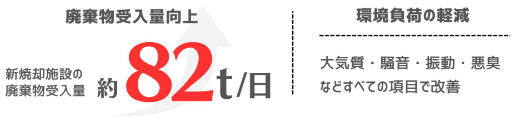 新施設の稼働により、産業廃棄物の処理能力が1日82tへと大幅に向上します。これにより、より多くの廃棄物を効率的に処理し、迅速な対応が可能になります。